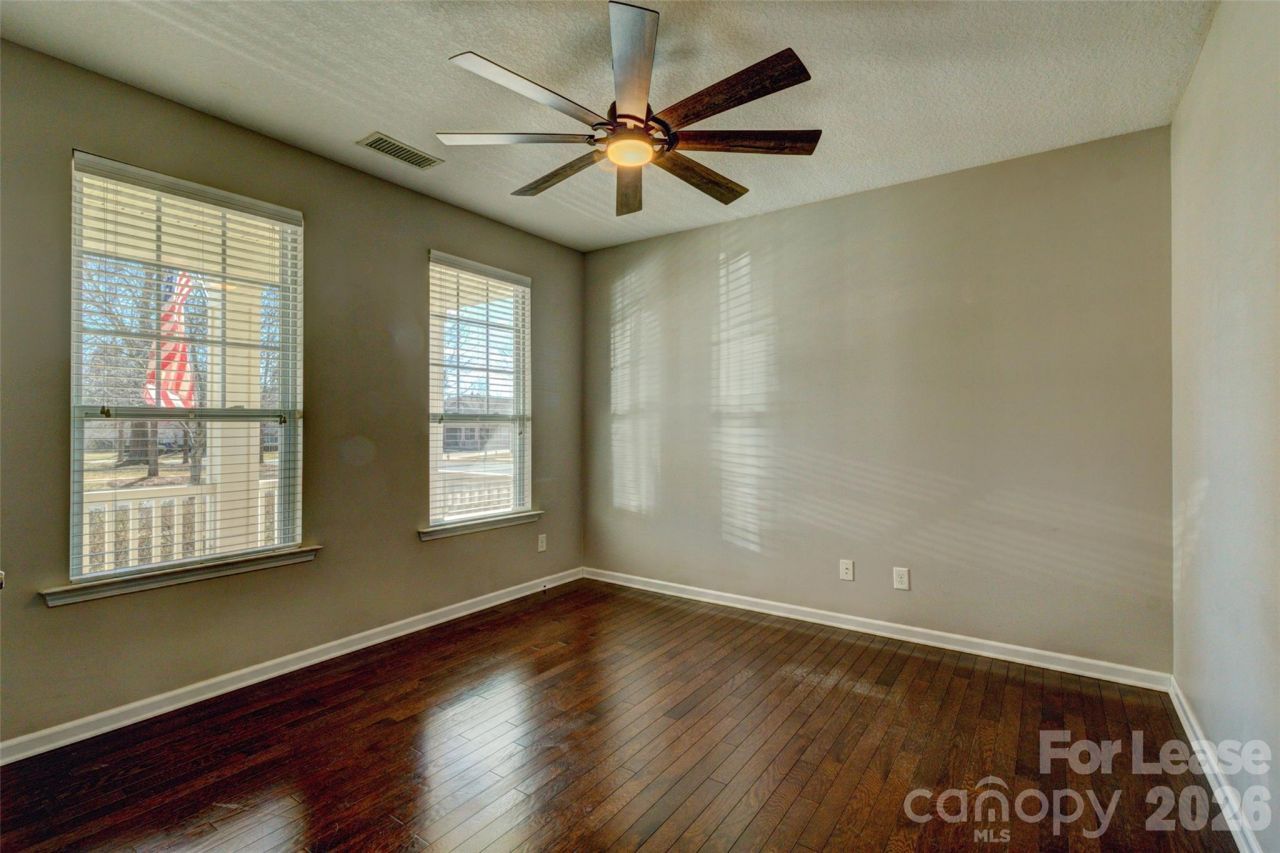 This modern and spacious 4-bedroom, 3.5-bathroom home in Middleton Farm offers 2,700 square feet, neutral paint throughout, and a functional open floor plan. Hardwood floors run through the main level, and the kitchen features a center island, wood cabinetry, granite countertops, tile backsplash, and stainless steel appliances. The family room has a gas fireplace, and the main floor also includes a formal dining room, office, and half bath.Upstairs, the owner's suite has a tray ceiling, a walk-in closet with built-in shelving, and a private bath with a dual vanity, a garden tub, and a separate tiled shower. A private guest suite with its own full bath, two additional bedrooms with a shared bath, a loft space, and an upper-level laundry complete the second floor. A covered front-facing balcony adds a nice outdoor space, and the backyard is fully fenced. Two-car attached garage included.South Point school district. Easy access to I-85 and just 15 minutes to Charlotte Douglas Airport.