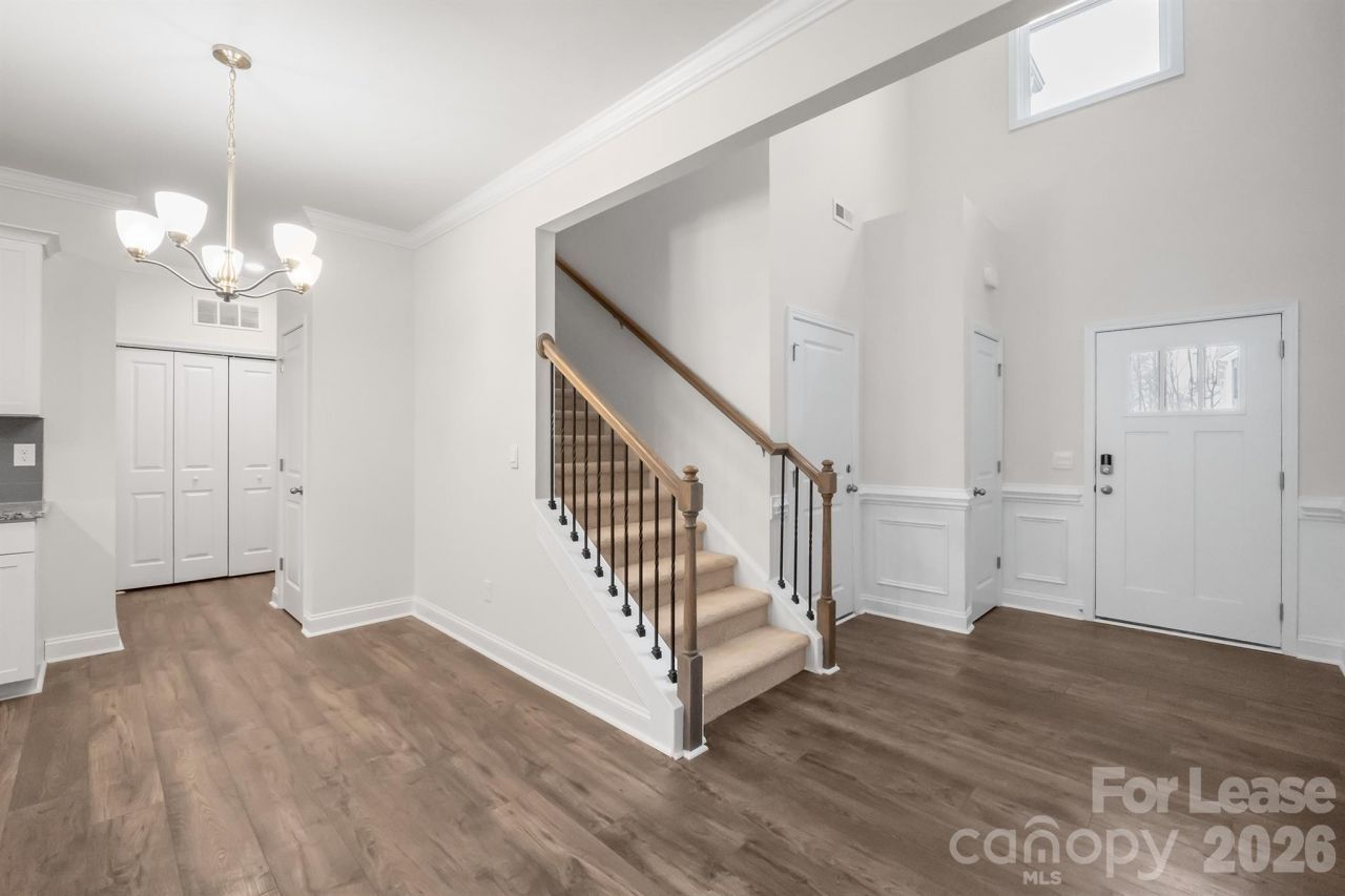 End Unit Corner Townhome | Main Level Owner's RetreatWelcome home to 4218 Steel Way in Blackstone Bay.Set along tree-lined streets with sidewalks and classic lighting, this home offers added privacy and welcoming curb appeal. A dramatic two-story foyer filled with natural light and adorned with elegant crown molding sets the tone.An effortless open-concept layout connects the kitchen, dinette, and family room, ideal for gatherings and everyday living. The kitchen features brand new stainless appliances, gas cooking, generous cabinetry, a pantry closet, and a functional center island. A main-level powder room provides comfort for guests.Tucked away on the main level, the primary retreat includes a modern en-suite with dual vanities, a walk-in shower, and a walk-in closet.Upstairs, a whole new world awaits with three additional bedrooms, a full bath with dual vanities, and an oversized loft ideal for a home office, media room, or additional living space enhanced by side windows unique to this end-unit position.The family room extends to a private rear patio framed by landscaped common space, offering privacy within a quiet residential setting.We understand pets are part of the family too, and they are warmly welcomed here, with a pet park just steps away. Residents enjoy a community swimming pool, nearby boat access to Lake Norman, and shopping approximately one mile away.Exterior lawn maintenance is included.We invite you to experience 4218 Steel Way in person. Schedule your private tour today.
