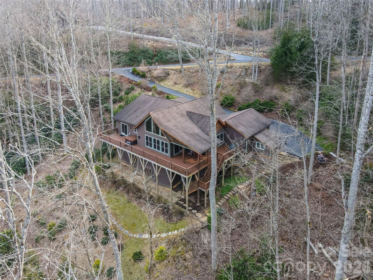 Discover exceptional mountain living at 637 Ontario Ridge in Twin Rivers, a well-cared-for home offering comfort, privacy, and sweeping views in one of the High Country's most desirable gated communities. Twin Rivers is known for its natural beauty and fly fishing on two trout streams, Boone Fork Creek and the Watauga River, and this property is ideally located in Foscoe, central to the best of the High Country?approximately 7 miles to Boone, 9.3 miles to Blowing Rock, and 11 miles to Banner Elk, with convenient access to Grandfather Mountain and the Blue Ridge Parkway. Whether you are searching for a full-time residence or a seasonal mountain retreat, this home offers an outstanding combination of location, quality, and lifestyle.Set on an oversized 2.46-acre lot near the end of a cul-de-sac, the property enjoys relative privacy enhanced by wooded surroundings that naturally buffer it from neighboring homes. The home is designed for easy living with one-level living, minimal steps into the home, an easy-access driveway, and a generous parking and turnaround area. An attached two-car garage plus a separate golf cart garage offer excellent flexibility for vehicles, recreational gear, and storage.Inside, the home features radiant heated Oak hardwood floors and beautiful tongue-and-groove ceilings, creating warmth and timeless mountain character. The spacious open-concept kitchen, living, and dining area is ideal for entertaining, anchored by over 20-foot vaulted ceilings in the living room and expansive windows that bring in natural light and showcase the scenery. The living room, dining area, and primary bedroom all enjoy sweeping mountain views.The large kitchen is both functional and inviting, featuring custom cabinetry, granite countertops, a large island overlooking the view, and abundant storage. Outdoor living is just as impressive, with over 1,000 sq ft of Trex deck designed to take full advantage of the mountain setting. This space includes a covered area, a grilling area with propane hookup, and a hot tub area with a retractable awning, making it perfect for relaxing or hosting guests year-round.The primary suite is a private retreat with vaulted tongue-and-groove ceilings, direct deck access, and an en-suite bath featuring a jetted tub, tiled shower, and leathered granite countertops. It also offers a large walk-in closet with attic storage access and the convenience of en-suite laundry. Secondary guest rooms are generously sized with vaulted ceilings.Storage is abundant throughout the property, with generous closet space, attic space, an oversized 637 sq ft garage, and a 20+ foot crawlspace. Additional upgrades include a fully encapsulated crawlspace with dehumidifier, whole-house heated hardwood floors, instant hot water heater, 50-amp electrical outlet outside the garage, security system, Wi-Fi thermostat, and a water leak detector at the well. The hot tub, golf cart, grill, and appliances all convey with the home.Outside, the lan